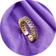 Soft shimmer, bold spirit. The Lavender Baguette Adjustable Ring from TheJune features a radiant gold-plated open band, crowned with delicate lavender baguette stones that catch the light — and the eye. Feminine yet fierce, this...